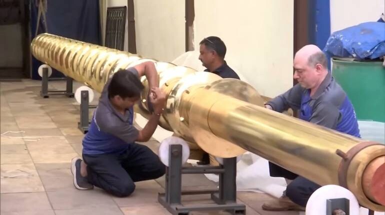 With the construction of the Ram temple in Ayodhya reaching its last leg, seven brass flag poles, weighing over 5,500 kg, are being made at a factory in Ahmedabad.