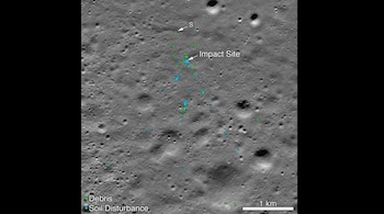 "The November mosaic shows best the impact crater, ray and extensive debris field. The three largest pieces of debris are each about 2x2 pixels and cast a one pixel shadow," the statement said.