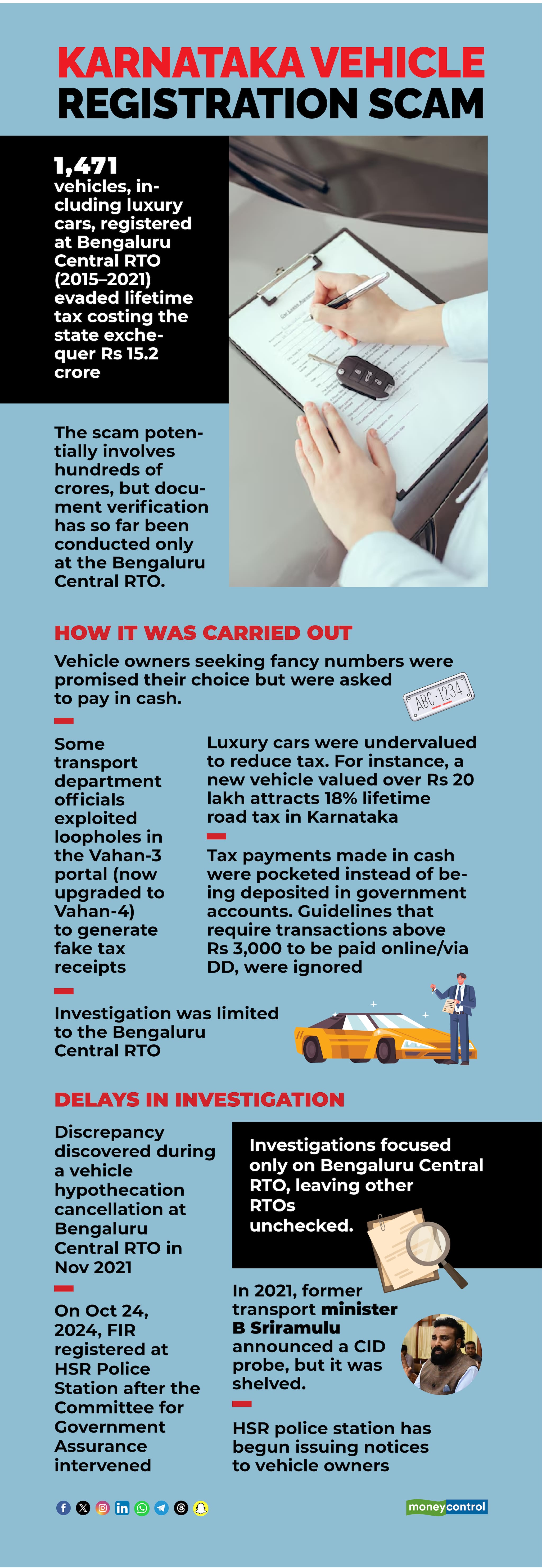 While the scam surfaced in 2021-2022, former Transport Minister B Sriramulu had informed the state assembly that a probe to be conducted by the criminal investigation department (CID) would be ordered into the irregularities in vehicle tax registration that caused financial losses. However, the investigation was never initiated.