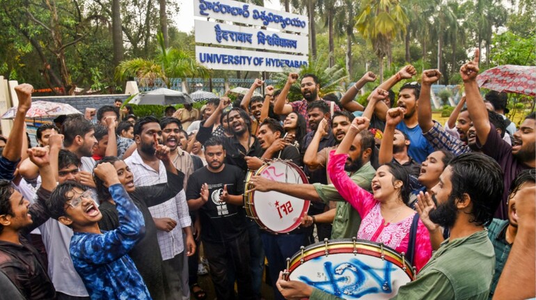 Students of the University of Hyderabad were protesting against the state government's plans to develop the 400-acre land parcel bordering the university.