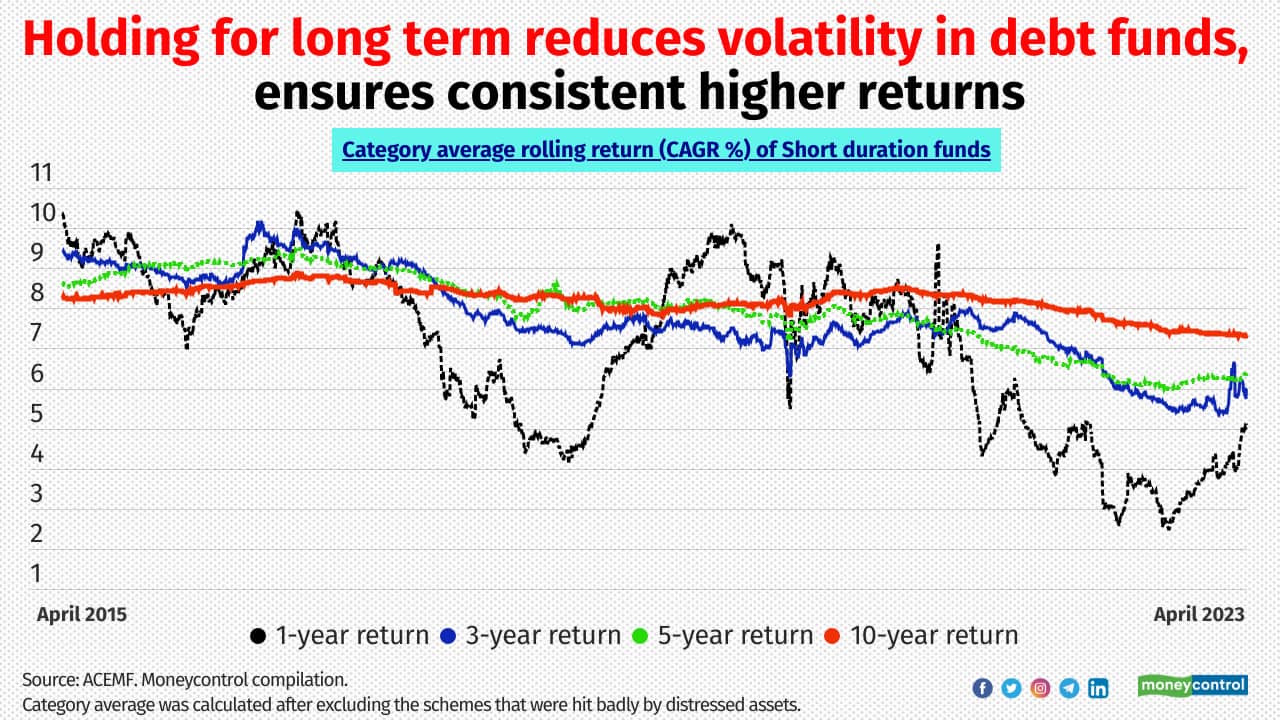 Investment held for the long term reduces not only volatility but also ensures higher consistent returns (see graph). In the above graph, average rolling returns of the short duration funds category for different timeframes were compared. So, debt funds can also be long-term wealth creators for those who want to build a fixed-income portfolio. Salaried investors can also consider investing in debt funds through SIP just like recurring deposits in the banks. To know more about MC30,