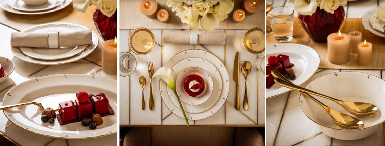 Tableware brand Omorfo Homes has launched its debut collection of porcelain dinnerware accented with 24-carat gold. The ‘Gilded Pearl’ collection, which comes in 21-piece or 27-piece combinations, marries opulence with minimalism, melding the drama of gold accents with the simple interplay of ivory.