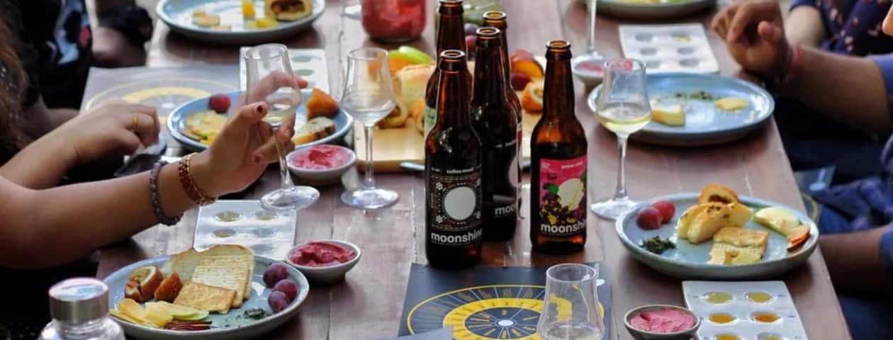 At a 45-minute drive from Pune, within an old, restored factory with a small courtyard, is The Moonshine Meadery. Meads are traditionally gluten-free alcoholic beverages created by fermenting honey with various spices and fruits. At Moonshine, they infuse the mead with flavours: mangoes, coffee, guava chilli, chocolate orange, even bourbon oaked apple!