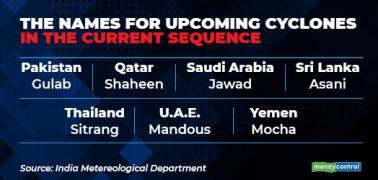 Cyclones, developing over the north Indian Ocean including the Arabian Sea and Bay of Bengal, are named by the India Meteorological Department under the Ministry of Earth Sciences. The IMD is one of 6 global Regional Specialised Meteorological Centres (RSMCs) which coordinates cyclone alerts. Thirteen countries namely Thailand, Sri Lanka, Pakistan, Oman, Myanmar, Maldives, Bangladesh, Iran, Qatar, Saudi Arabia, UAE, Yemen and India suggest names. These are used sequentially after a cyclone with atleast 63 km/hour wind speed develops. Cyclone Amphan in 2020 exhausted the original list of names established in 2004. In 2021, cyclones Tauktae (by Myanmar), and Yaas (Oman) were named from the new list.