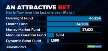 Money-market funds is one of the three categories that received large inflows among the debt mutual funds over the last one year, AMFI data shows. These funds invest in debt securities with short maturities and minimal credit risk. As mandated, they invest only in the money market instruments such as Repos, certificate of deposits, commercial papers and T-bills that are maturing upto one year. They do not allocate to corporate debentures. Experts believe that HNI and corporates prefer these funds over liquid funds and bank FDs given their safer underlying investments with short maturity profile. With accrual strategy, these funds can deliver better returns when interest rate inches up.