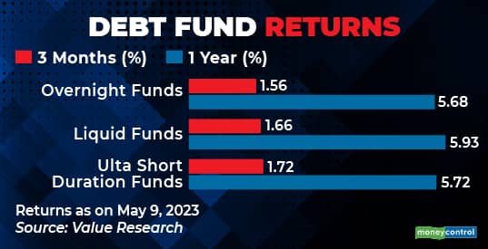 Mutual funds schemes investing in short-term bonds have benefited from rising interest rates. Reserve Bank of India hiked policy interest rates by 250 basis points since May 2022. Ultra short duration funds that invest in bonds in such a way that the portfolio's Macaulay duration is between 3-6 months. Though these schemes are good short term parking space for money, investors must check exit loads and quality of the portfolio before investing. According to AMFI, 25 such schemes manage assets under management worth Rs 90,295 crore as on 30 April 2023. If short term interest rates come down in near future, as anticipated by some experts, the returns on these schemes will also taper down.