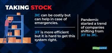 Long before millennials started talking in acronyms, such as FOMO and BRB, inventory-management teams were doing it. Theirs are JIC and JIT, to refer to inventory-management systems. JIC or just in case is when they maintain high inventory levels at a high cost, which helps in locations that are likely to witness supply-chain disruptions. This also helps with highly popular products that cannot be substituted. JIT or just in time is when companies take raw-material from their vendors as and when customers place orders. Companies had been moving from JIC to JIT because it is more cost efficient, but the pandemic reversed that trend to an extent.