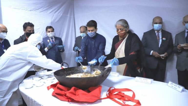 Marking the final stage of the Budget-making process for the Union Budget 2021-2022, Halwa ceremony was held at Finance Ministry on January 23 in the presence of Finance Minister Nirmala Sitharaman. A customary Halwa ceremony is performed every year before the “lock-in” process of Budget preparation begins.