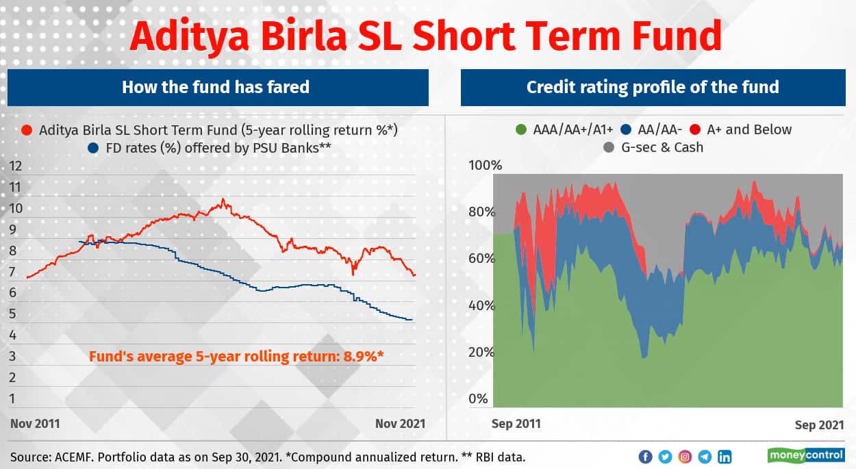 Belonging to the short duration category, ICICI Prudential Short Term Fund has delivered compounded average five-year return of 8.6 percent in the last 10 years. It has maintained its portfolio average maturity ranging 1.2-4.8 years over the last 10 years. More than 80% of the assets has been ever invested in the highest rated debt instruments.