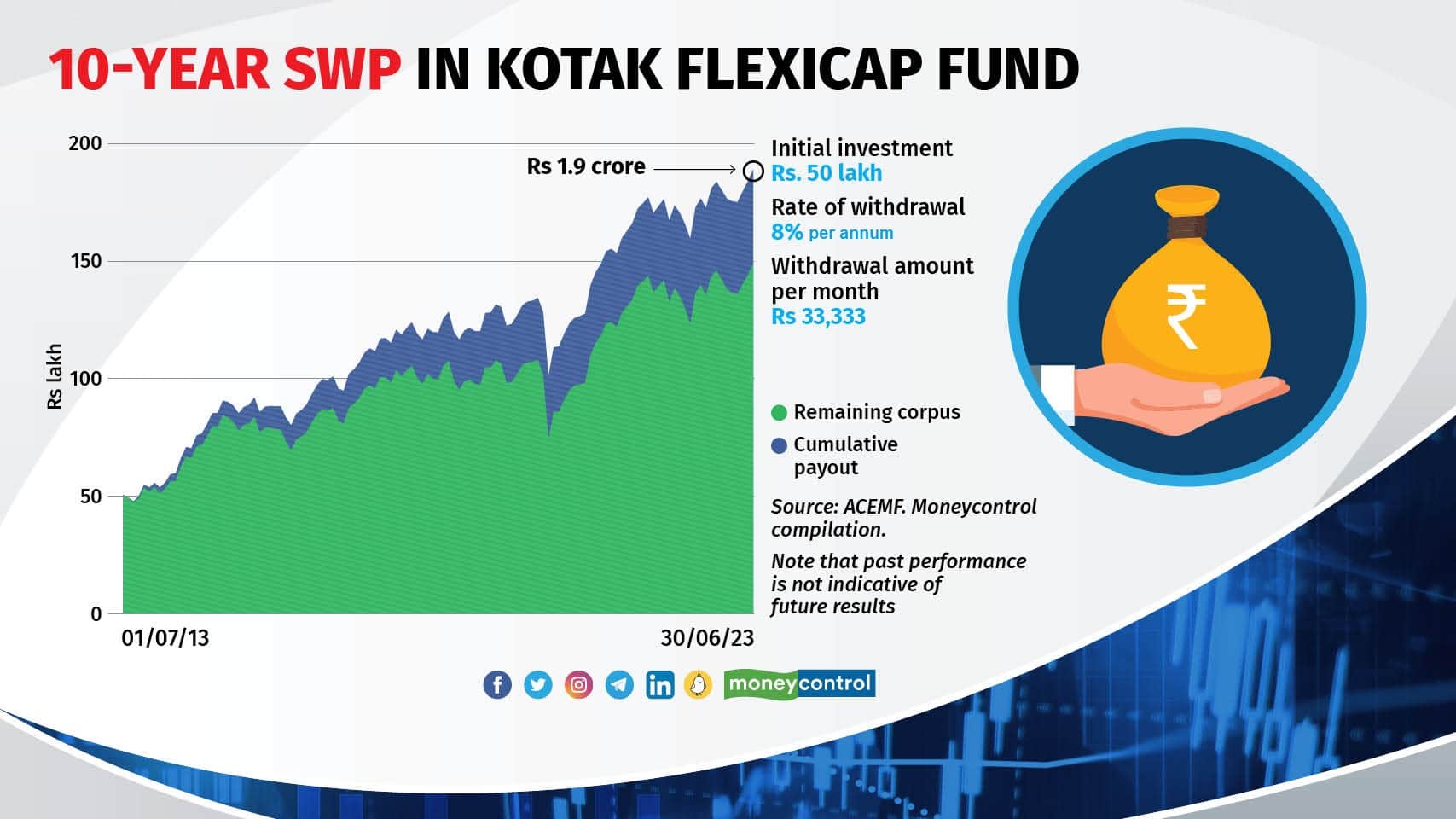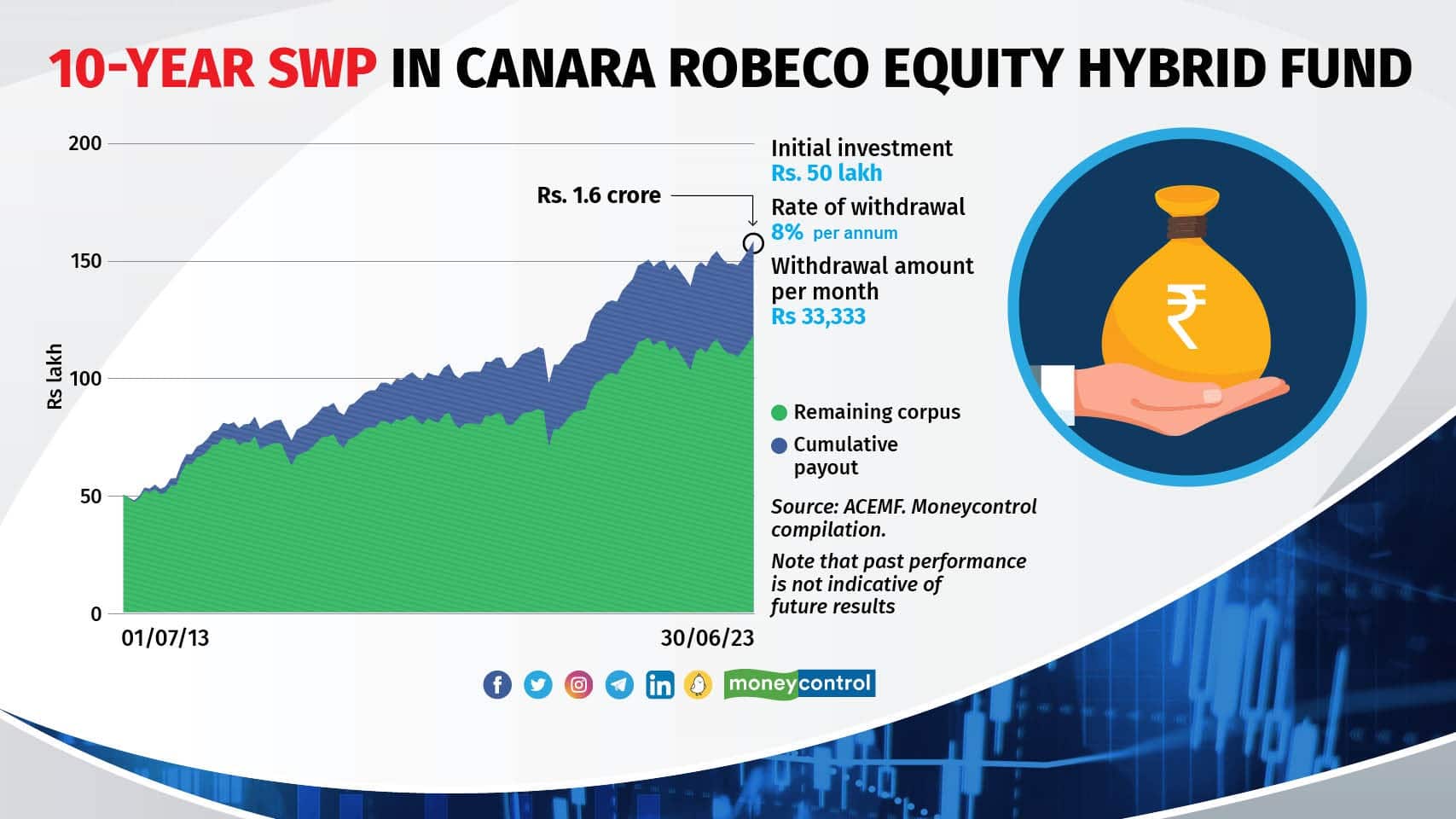 Systematic withdrawal plan allows unitholders to withdraw money at regular intervals. A Moneycontrol analysis of MC30 debt and equity funds show that 6-8% can be ideally withdrawn every month without depleting the corpus, if you stay invested for 10 years