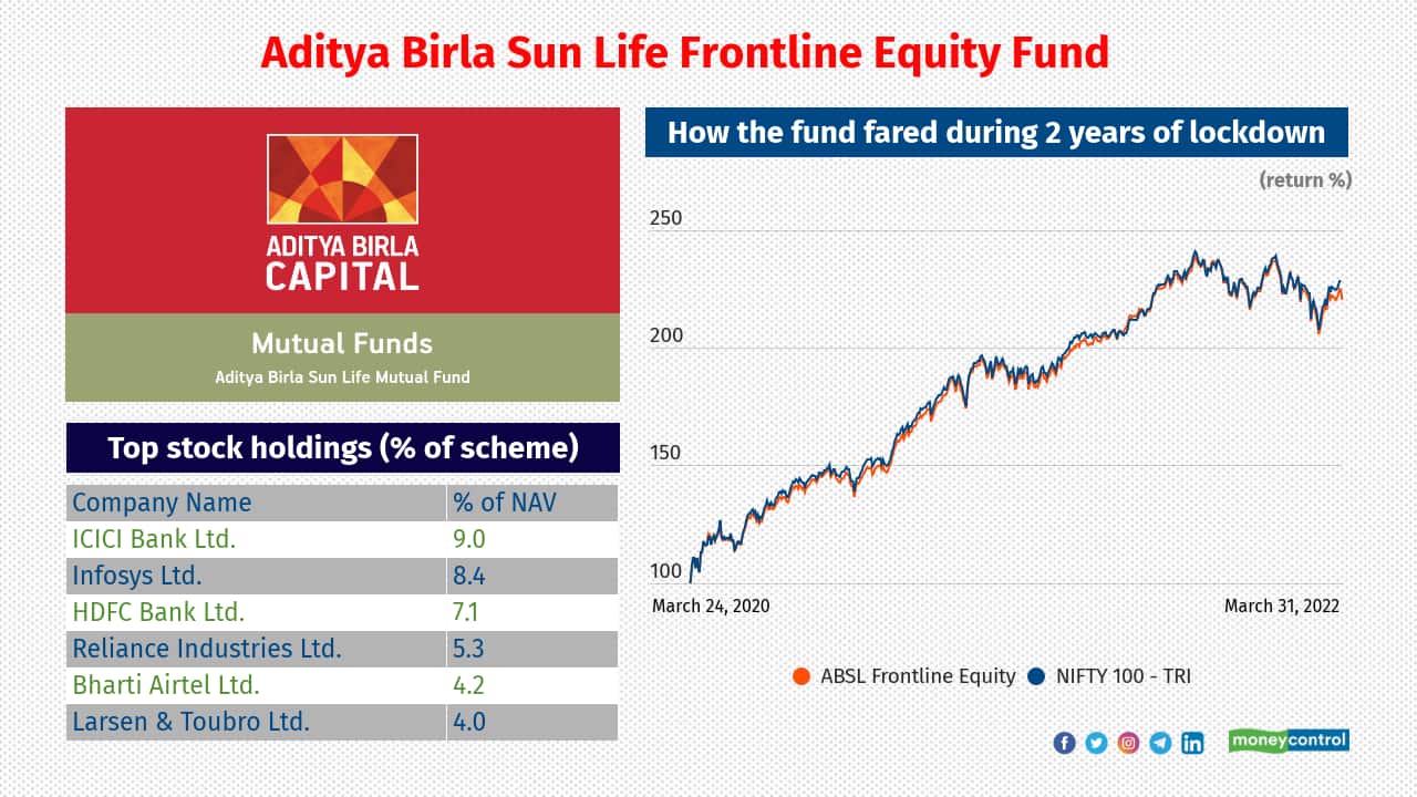 Aditya Birla Sun Life Frontline Equity Fund has delivered returns of 124.8 percent over the two years when the Covid-19 restrictions were in place. It manages investor assets worth Rs 21,000 crore.