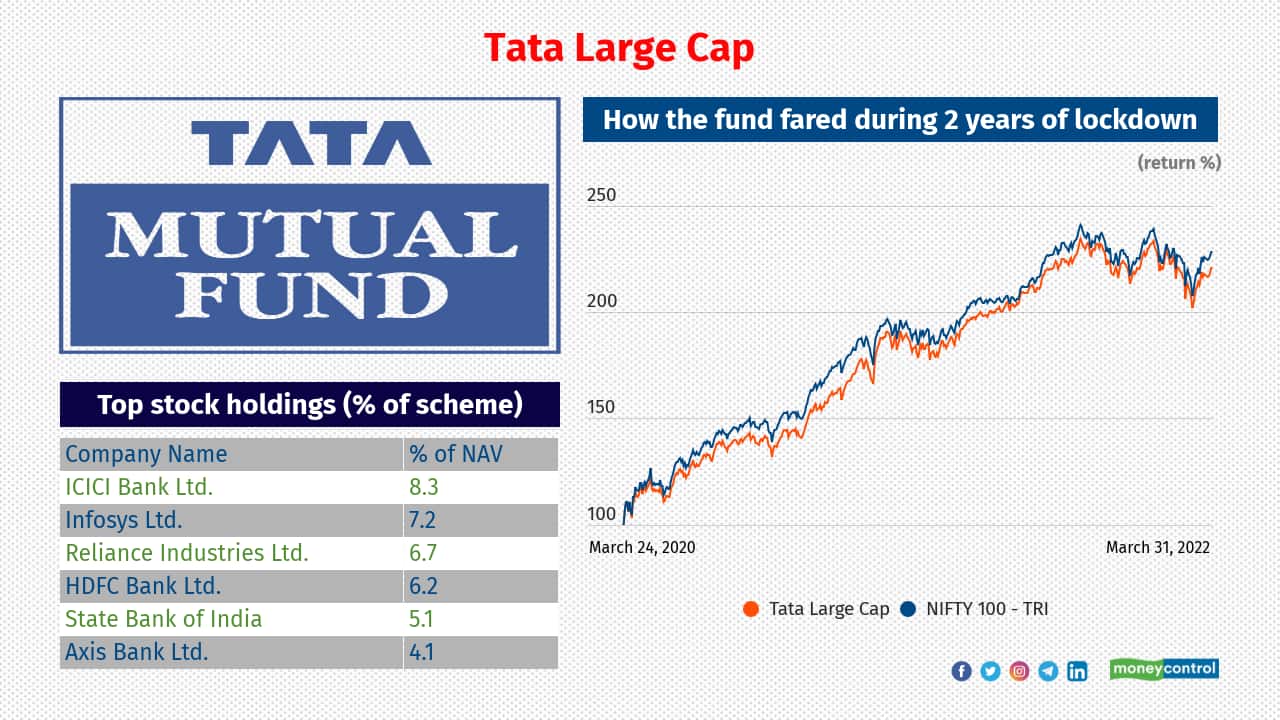 Tata Mutual Fund is backed by the country's largest business conglomerate -- the Tata group. The fund house's large cap offering -- Tata Large Cap Fund -- has delivered returns of 120.6 percent over two years of pandemic time.