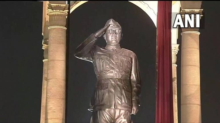 PM Modi unveils the statue of Netaji Subhas Chandra Bose near India Gate and pays floral tributes to him on September 8. (Image: Twitter @BJP4India)