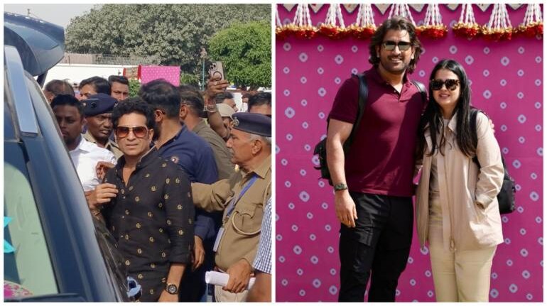 Sachin Tendulkar arrives in Jamnagar for Anant Ambani-Radhika Merchant pre-wedding festivities.