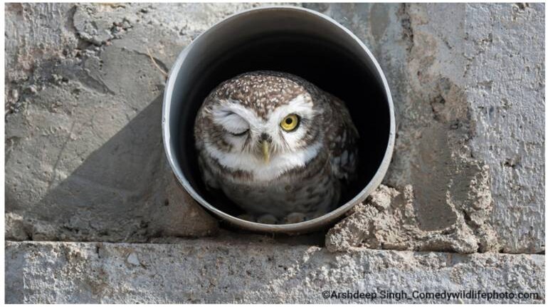 The owl sees you. Arshdeep Singh from India wins the Junior Award for this photo taken in Bikaner. (Image credit: Arshdeep Singh/comedywildlifephoto.com)