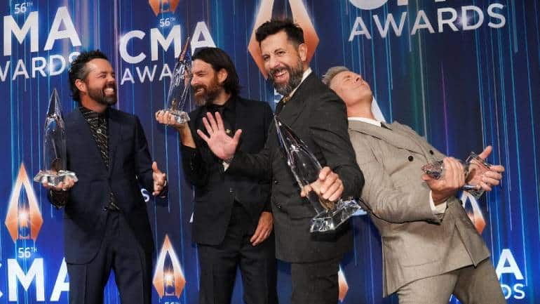 Trevor Rosen, Brad Tursi, Matthew Ramsey and Geoff Sprung of Old Dominion pose with their award for Vocal Group of the Year at the 56th Annual CMA Awards at Bridgestone Arena in Nashville. (Image: Reuters)