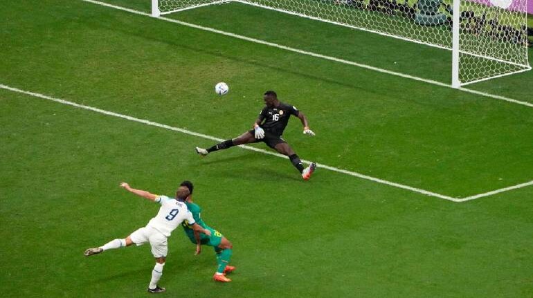 England's Harry Kane, left, scores his side's 2nd goal during the World Cup round of 16 soccer match between England and Senegal, at the Al Bayt Stadium in Al Khor, Qatar. (Image: AP)