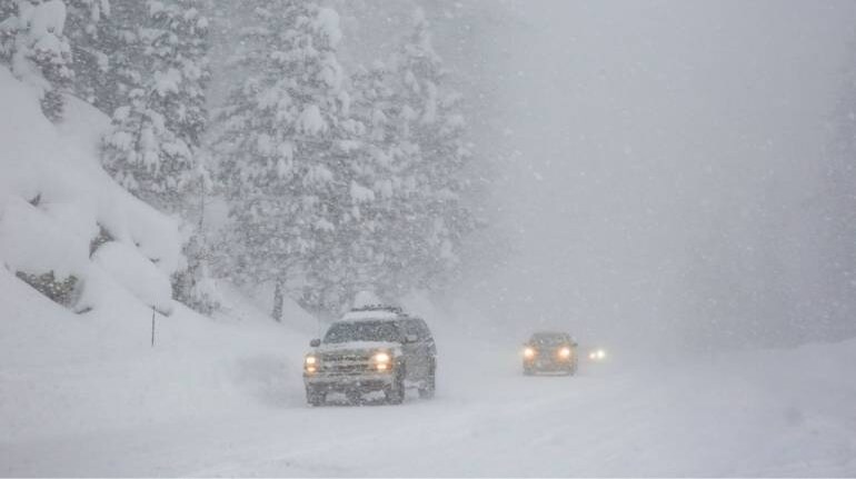 The Lake Tahoe area that straddles the California and Nevada borders in the Sierra Nevada was expected to have blizzard conditions with winds gusting to 100 mph along the ridgetops, while the lake itself could see waves large enough to capsize small boats, the weather service warned. “If you risk travel you could become stranded in vehicles for hours,” the weather service warned. (Image: AP)