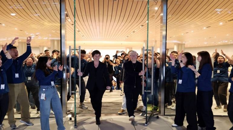 Tim Cook, who was accompanied by Deidre O'Brien, Apple's senior vice president of retail and people, did not make any public remarks at the store. The store opening drew hundreds of people, with Chinese police stepping in to manage the crowd. (Image: Reuters)