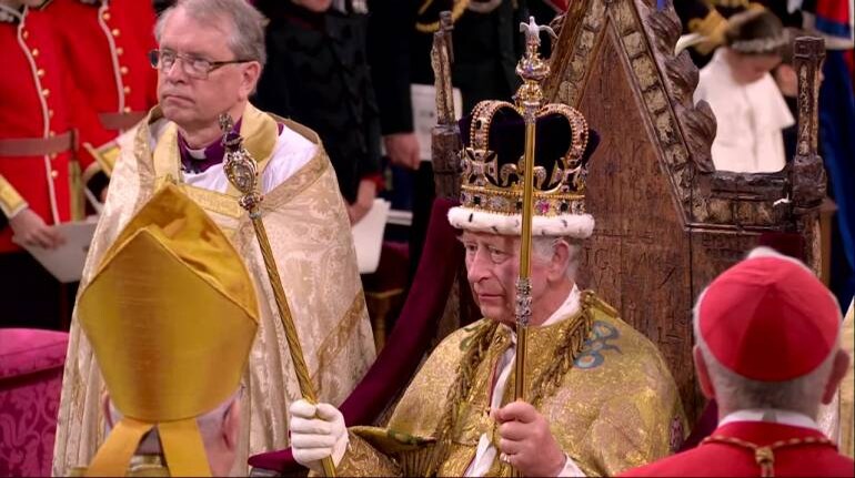 King Charles III has been crowned by the Archbishop of Canterbury in Britain's first coronation in 70 years as the monarchy faces challenges ahead.