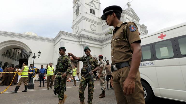 Sri Lankan military officials stand guard in front of the St. Anthony's Shrine, Kochchikade church after an explosion in Colombo, Sri Lanka. (Image: Reuters).