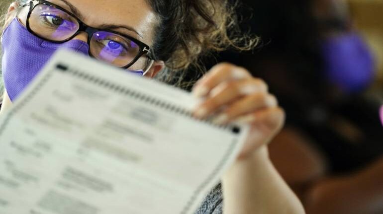 A county election worker scans mail-in ballots at a tabulating area at the Clark County Election Department on Thursday, November 5, 2020, in Las Vegas. (Image: AP Photo)
