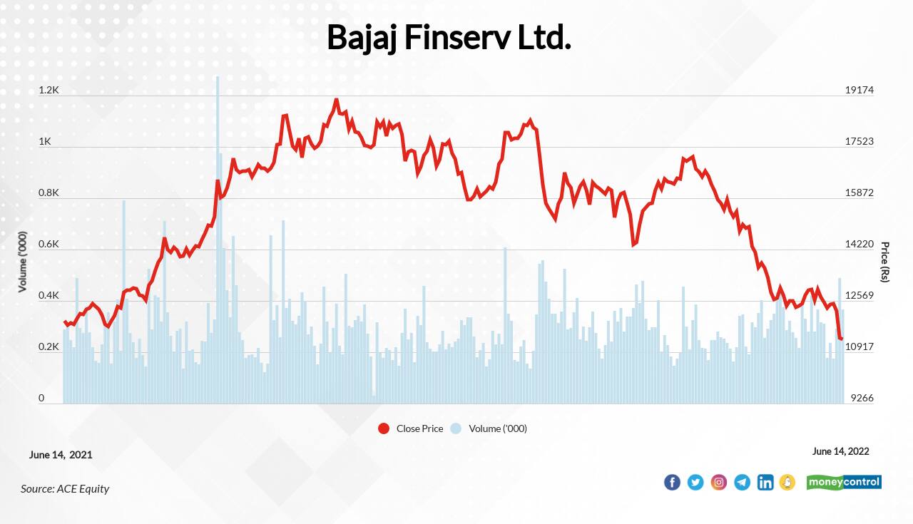 Bajaj Finserv | The stock has lost about 41 percent from its 52-week high of Rs 19,320 to Rs 11,335 on June 14. According to Bloomberg's consensus rating, the stock has an upside potential of about 44 percent, with the target price of Rs 16,308.
