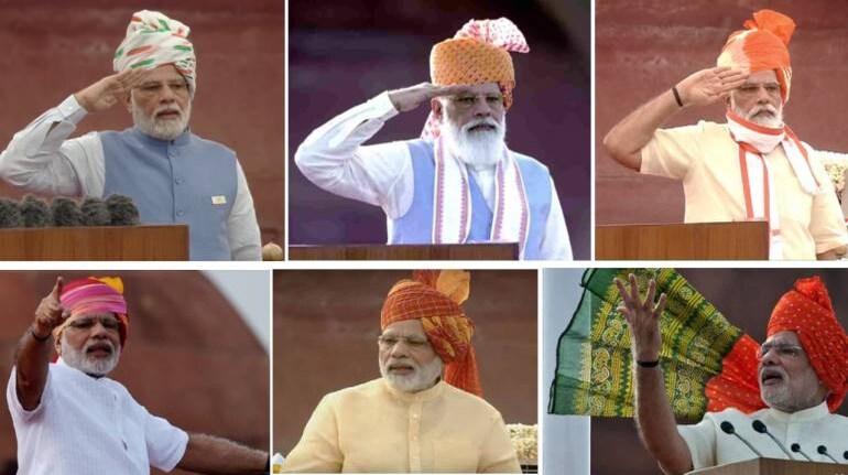 2019 | the Prime Minister sported a multi-coloured turban with a long tail that extended till his ankle as he gave his Independence Day speech from the ramparts of the Red Fort after returning to power for a second term with a thumping majority. (Image: Reuters)