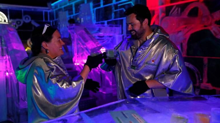 As record high temperatures singe Europe, the ICE PUB in downtown Prague offers a brief escape to Arctic conditions