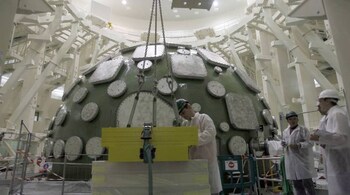 View of the Megajoule Laser project, currently under construction at the CESTA (Centre d'Etudes Scientifiques et Techniques d'Aquitaine) in Le Barp southwestern France, where scientists will be able to simulate nuclear tests using amplified energy from 176 lasers which is directed at a target located inside the sphere, thus reproducing nuclear fusion under temperature conditions some 100 times higher than those found at the centre of the sun (Courtesy: Reuters)