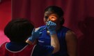 Mary Kom had tears in her eyes and a wide smile on her face when the referee raised Valencia's hand at the end of the bout, exhausted after the intense clash.