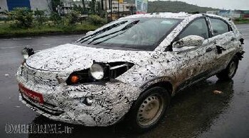 The news of the Tata Nexon compact SUV being spotted testing in and around Pune, Manali and even Leh has been hogging web pages for quite some time. The new bit nowis the Nexon being spotted with a floating touchscreen unit. The car in question looks to be wearing the base variant's clothes with black plastic door handles and steel wheels. It also had a manual dimming IRVM.