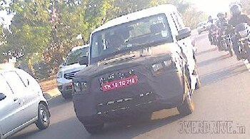 This seems a base version of the Scorpio as there are black bumpers and steel wheelsWhile we don't have interiors pictures at the moment, it is expected that the new Scorpio will be heavily inspired by the XUV500. The dashboard will be revised heavily and have a new touchscreen infotainment system in place. Mahindra will also introduce an XUV-inspired steering wheel. The gear lever though is expected to be a long throw one as is in the current car.