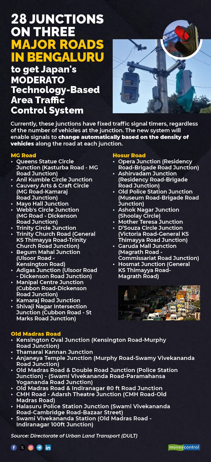 "The signal at the junction of Kensington Road and Murphy Road has been temporarily turned on (for a week) to check the installation and switching procedures. The actual testing of the signals will begin from the last week of February 2024," Deepa Cholan, Commissioner, Directorate of Urban Land Transport (DULT), which is implementing the project, told Moneycontrol.