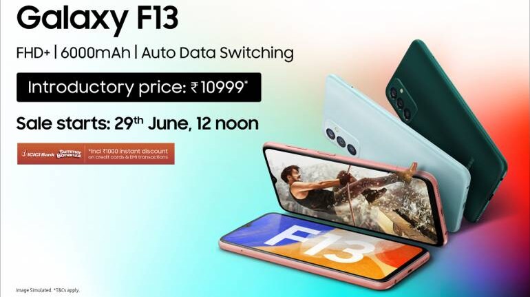 The Samsung Galaxy F13 price in India is set at Rs 11,999 for the base 4GB/64GB model, while the 4GB/128GB variant will set you back Rs 12,999. The Samsung Galaxy F13 will go on sale in India starting June 29 at 12 noon through Samsung’s official website and Flipkart. The handset is available in Sunrise Copper, Nightsky Green, and Waterfall Blue colours.
