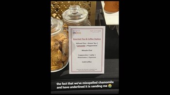 On the “gourmet tea & coffee station” placard, it read “Camomile”, underlined in red, hinting at the glaring error.