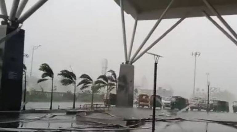 Videos doing rounds on social media show gusty winds pulling off panels and beams from the roof of the terminal as passengers rushed to safety. The area was also flooded with several torn metal pieces lying on the road in front of the station while others were being blown around in the wind.
