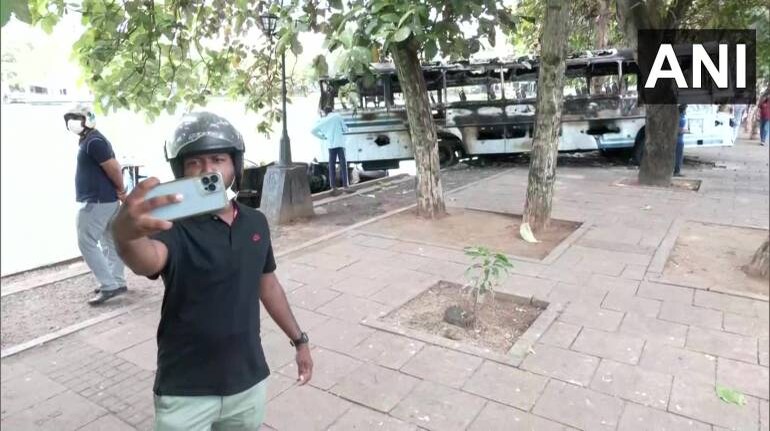 Amid the ongoing political crisis and anti-government protests in Sri Lanka, the country has found for itself new selfie points near burnt buses and cars submerged in ponds outside the Prime Minister's residence in Colombo.