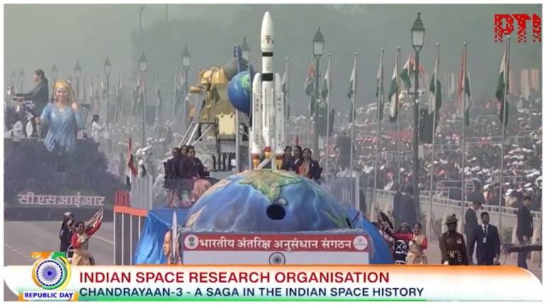 The tableau had a model of the Launch Vehicle Mark-3 that took Chandrayaan-3 to the Moon from Sriharikota. The lunar landing site of the spacecraft which was named Shiv Shakti Point by Prime Minister Narendra Modi was also featured.