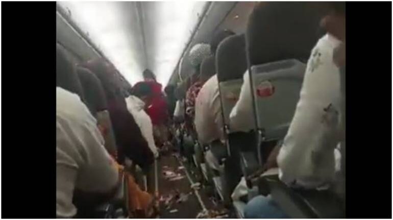A frightening video from the plane has emerged on social media, capturing panic among the passengers. It showed fallen cabin baggage and passengers’ belongings scattered on the plane’s floor.