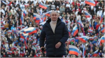 At the highly-charged rally, Putin justified the annexation of Crimea in 2014 as well the present attack on Ukraine.