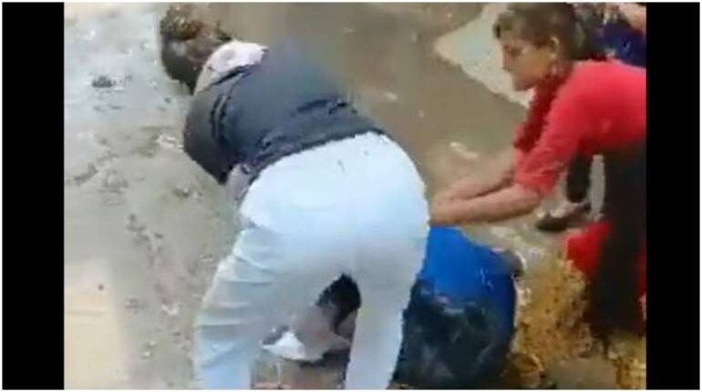 The attackers, who reportedly belong to a local gang, were seeing slapping the woman, hitting her with a stick and throwing her on the road. She cried out in pain but onlookers did not intervene to save her.