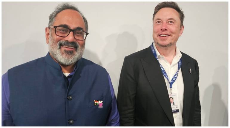 Union IT Minister Rajeev Chandrasekhar, who is in the UK to represent India at the AI Safety Summit, bumped into Tesla CEO Elon Musk and discovered a new namesake in his son.