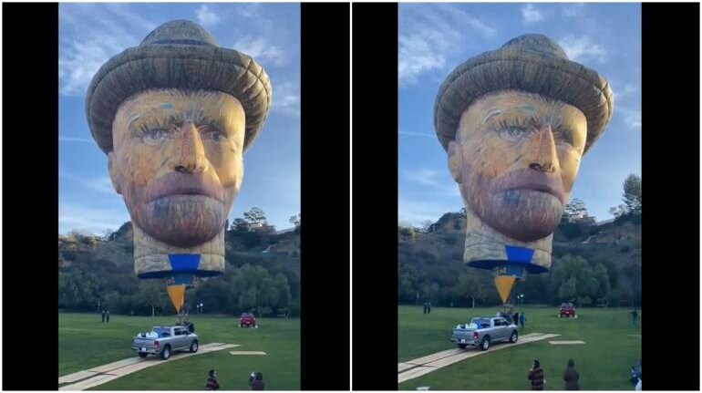 A hot air balloon in the shape of Vincent Van Gogh's head popped up in the Hollywood Hills in Los Angeles on Monday morning. According to the balloon's owners, it's part of a promotion for the Immersive Van Gogh exhibit in Los Angeles.