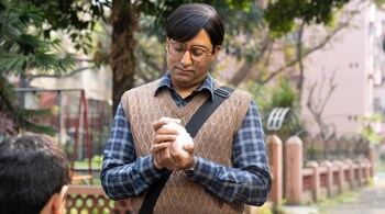 A bored employee in an insurance company who hates his job, his physicality—bulbous eyes screaming from behind thick-rimmed glasses, as he breathlessly trudges his bulky frame to Kolkata’s railway platforms, markets and cul-de-sacs—and his ordinariness, he’s the perfect lynchpin for the city’s organised crime cabals. He shoots effortlessly and precisely, and vanishes from the crime scene without a trace. His two words to his targets seconds before he kills them: “Ek minit…”