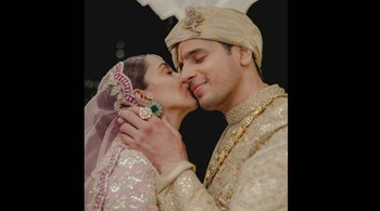Malhotra dodges the first time and then gives in while Advani garlands him with rose petals being showered upon them. The exchange garlands and share a kiss and then wave to the crowd of family and friends cheering them on.