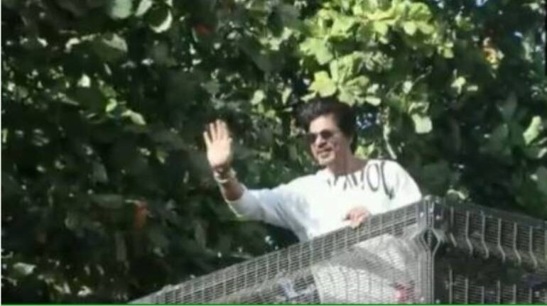 #WATCH | Actor Shah Rukh Khan waves to his fans outside 'Mannat' to celebrate the world TV premiere of his film 'Pathaan'. pic.twitter.com/jXTvsuNeQT— ANI (@ANI) June 10, 2023