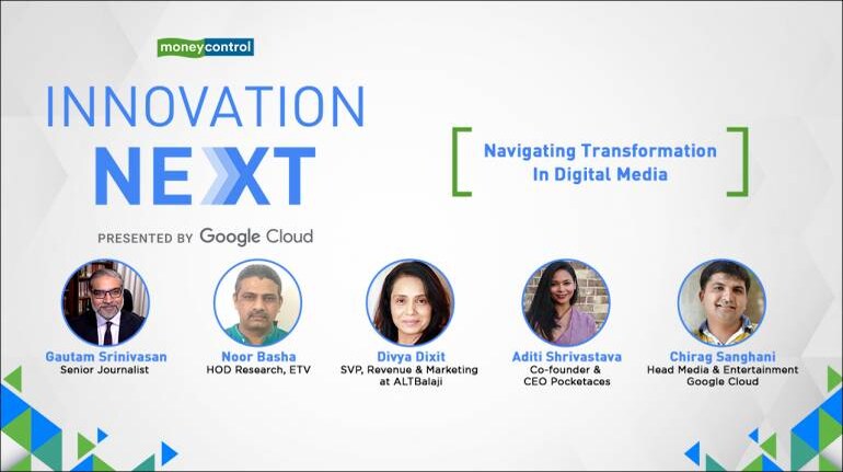 Exploring new trends in digital content creation and how enterprises can build the right kind of technology and infrastructure to streamline distribution of content across geographies and genres, Moneycontrol Innovation Next, presented by Google Cloud, brought together some of the finest minds in the sector to share their experiences and insights. The eclectic panel from the M&E industry comprised Srividhya Srinivasan, Co-founder and Chief Customer Success Officer, Amagi Media Labs; Aditi Shrivastava, Co-founder &CEO, Pocketaces; Noor Basha, HOD, Research, ETV and Divya Dixit, SVP – Revenue and Marketing at ALTBalaji and Chirag Sanghani, Head – Media & Entertainment, Google Cloud.