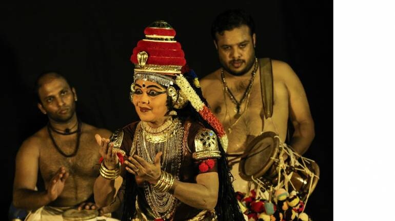 Dating back more than 2,000 years, Kutiyattam, Sanskrit theatre, which is practised in Kerala, is one of India’s oldest living theatrical traditions. Traditionally performed in theatres called Kuttampalams, which are located in Hindu temples, Kutiyattam has a stylised and codified theatrical language in which netra abhinaya (eye expression) and hasta abhinaya (the language of gestures) are prominent. Actors undergo 1o-15 years of rigorous training to become fully-fledged performers. The male actors hand down to their trainees detailed performance manuals, which, until recent times, remained the exclusive and secret property of selected families.