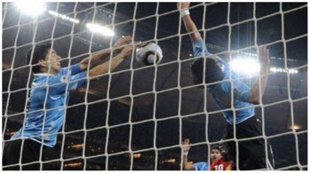But in came Luis Suarez, flapping his hands, as he 'cleared' the ball away from danger. Even before the Ghanaian players could protest the goalkeeper-like actions of the striker, the referee blew the whistle for a penalty and duly sent Suarez off with a red card.